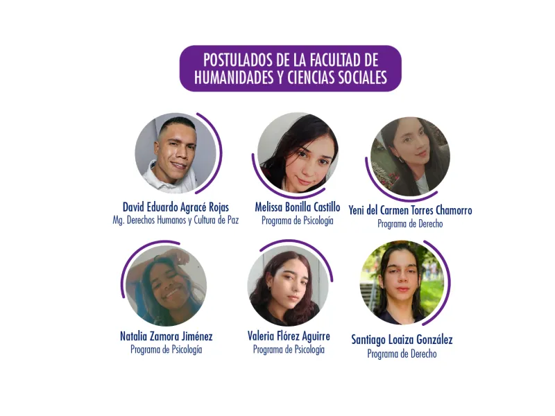 Facultad de Humanidades y Ciencias Sociales: David Eduardo Agracé Rojas, Melissa Bonilla Castillo, Natalia Zamora Jiménez, Valeria Flórez Aguirre, Santiago Loaiza, Yeni del Carmen Torres Chamorro.