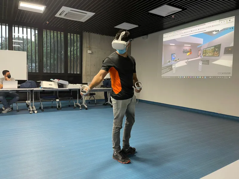 El pasado 22 de marzo a las 4:00 p.m. el CI+E llevó a cabo un taller de Realidad Virtual para Dummies, que se realizó en el Cali Design Factory (CDF), ubicado en el primer piso del edificio Cedro Rosado. La actividad hace parte de una iniciativa que consiste en traer distintas experiencias formativas a la Universidad, así como poner a disposición de los estudiantes y colaboradores las herramientas y dispositivos del CI+E.
